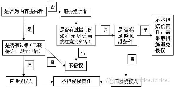 简而言之,对于网络服务提供者的行为是否构成侵权的问题,其归责要件仍然要回到民法、侵权行为法的框架中——即是否存在过错。在确定了是服务提供者否存在过错后,再考虑应当承担哪些法律责任以及是否可以通过“避风港”获得赔偿责任的豁免。